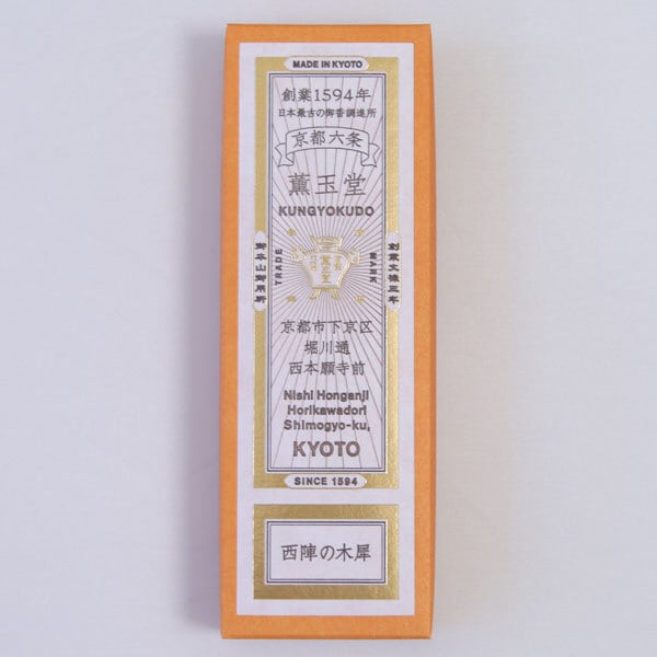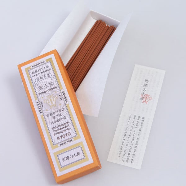 京都の香老舗 薫玉堂のお線香「西陣の木犀」。天然香料を主とした伝統の調香レシピに、現代の感性を取り入れ、名所や風情を表現したお線香。