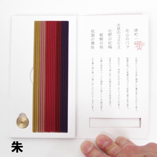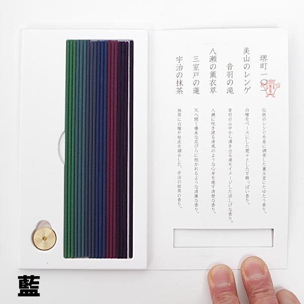 「朱と藍、両方購入しました。堺町101、美山のレンゲ、音羽の滝とくゆらせましたが、どれも嫌味がなく飽きない香り。しばらく楽しめそうです。」