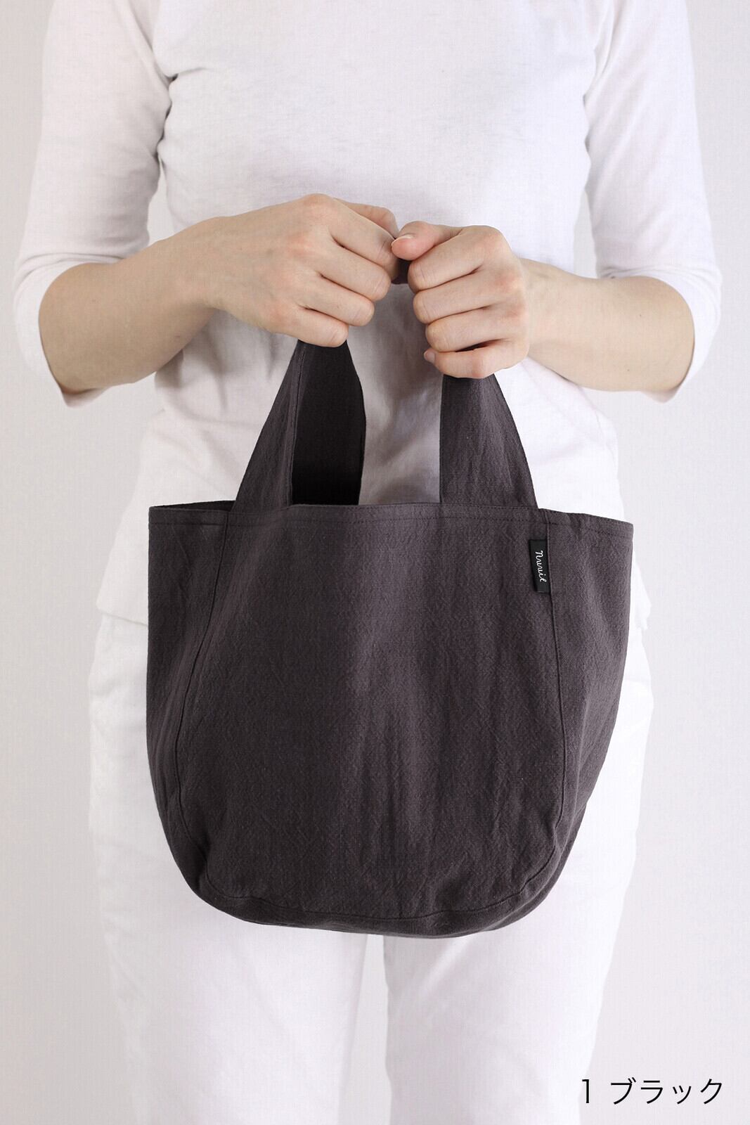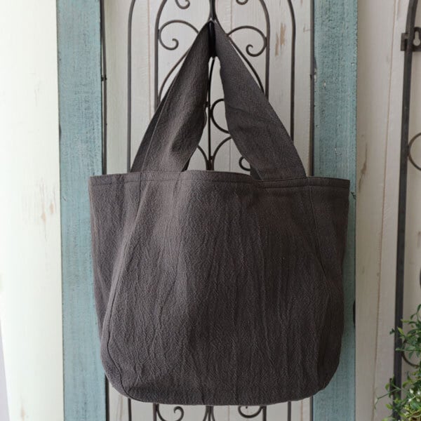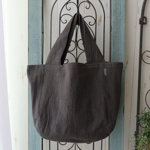 やさしい質感のウォッシュドコットンを使用した、アトリエヌイのラウンドバッグ。