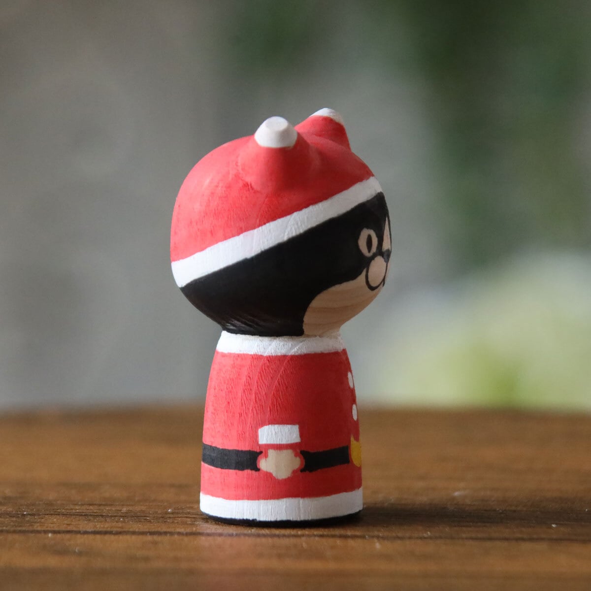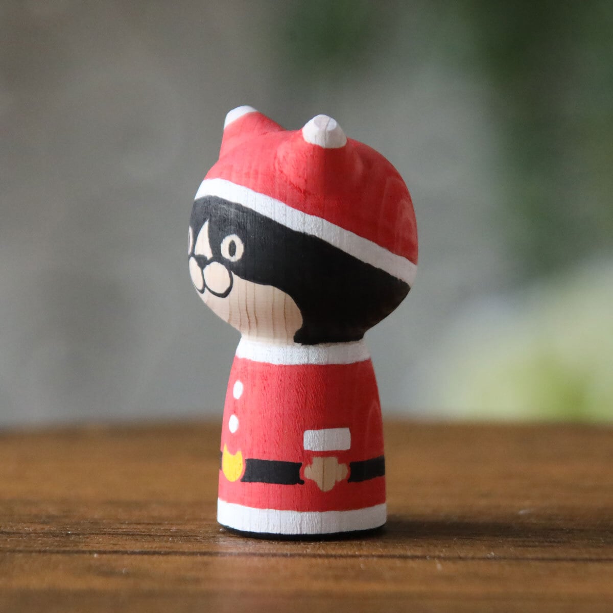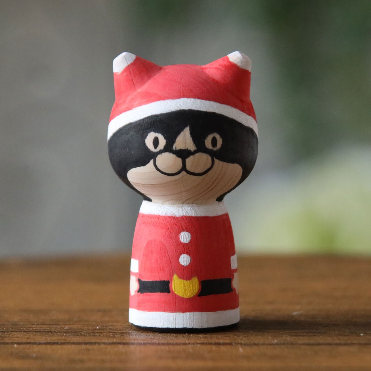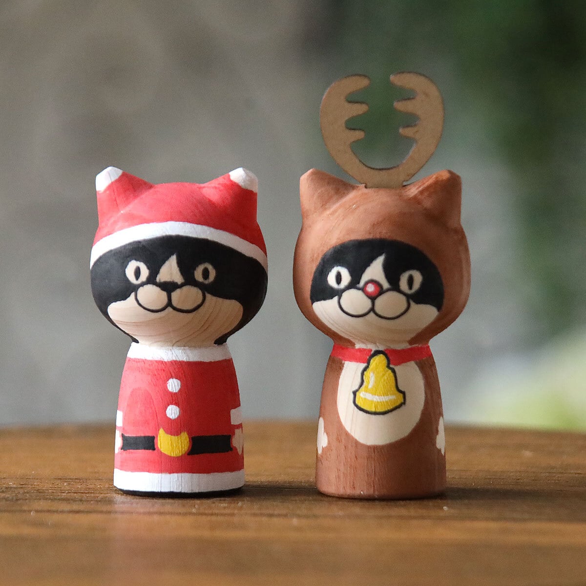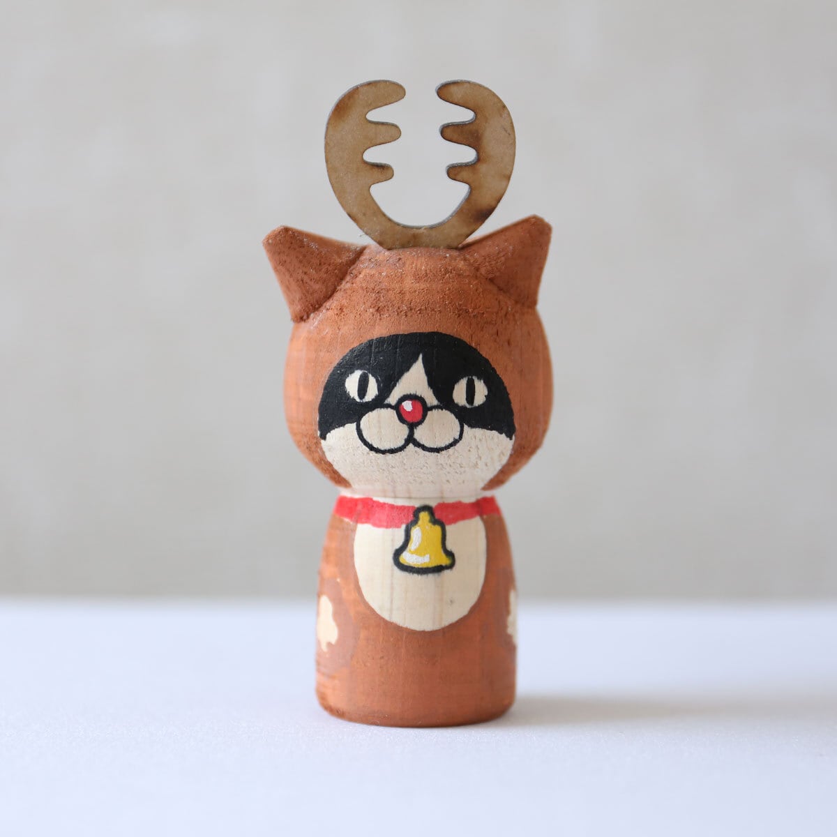 サンタクロースとトナカイをモチーフとした、ハチワレネコのねこけし。