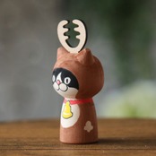 ねこけし サンタクロース・トナカイ クリスマス (ひのき 山形・酒田) ねこのこけし